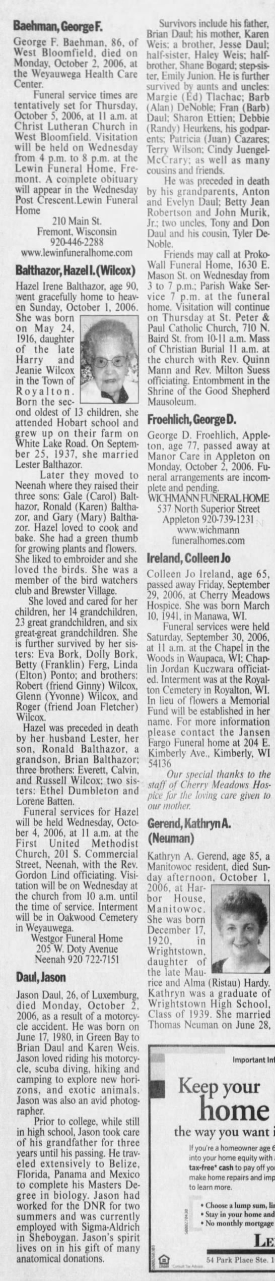 The obituary as originally published.